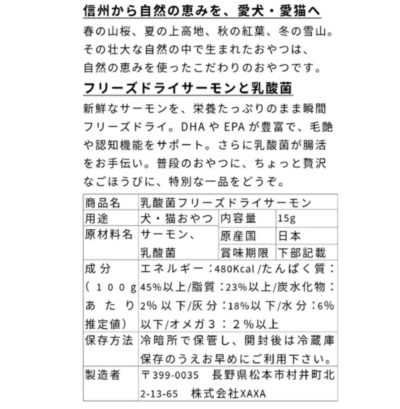 【犬猫兼用おやつ】フリーズドライサーモンと乳酸菌 15g